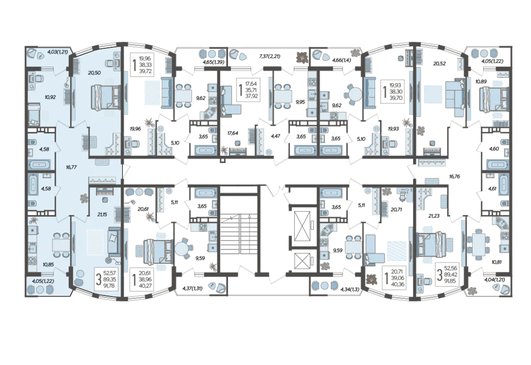 3-комнатная квартира №230, 91.78 м²