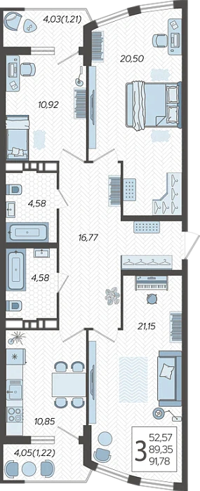 - Общая площадь 91.78 м²