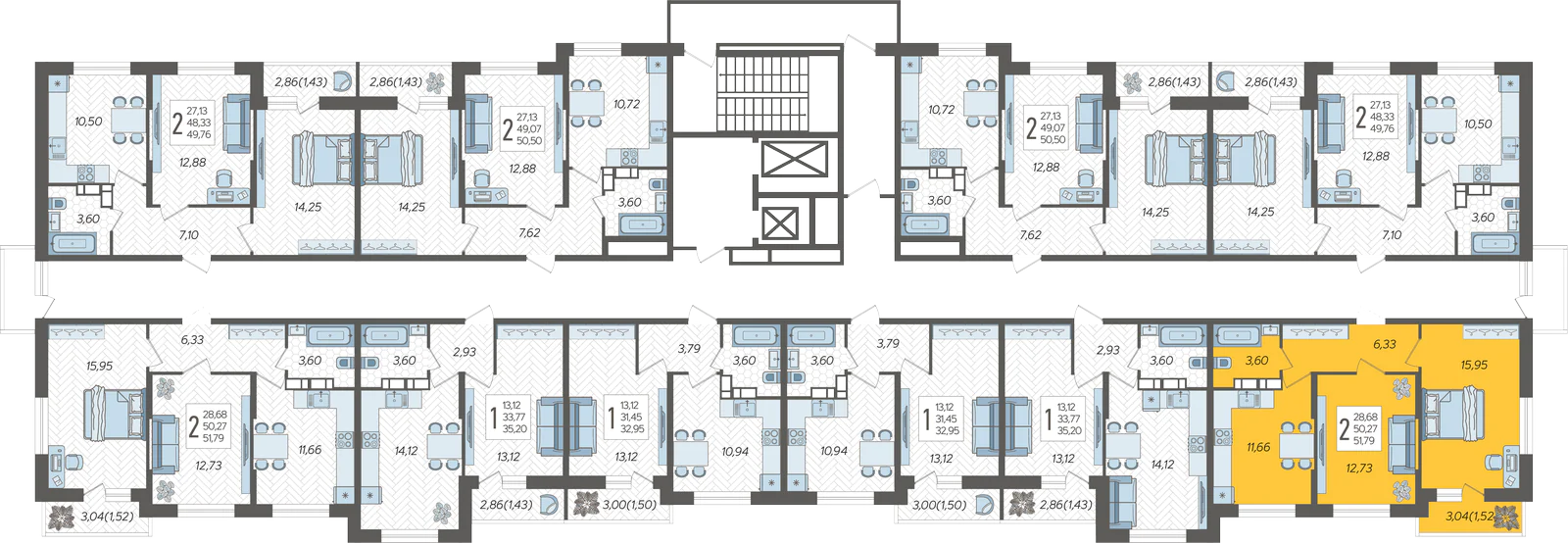 2-комнатная квартира №113, 51.79 м²