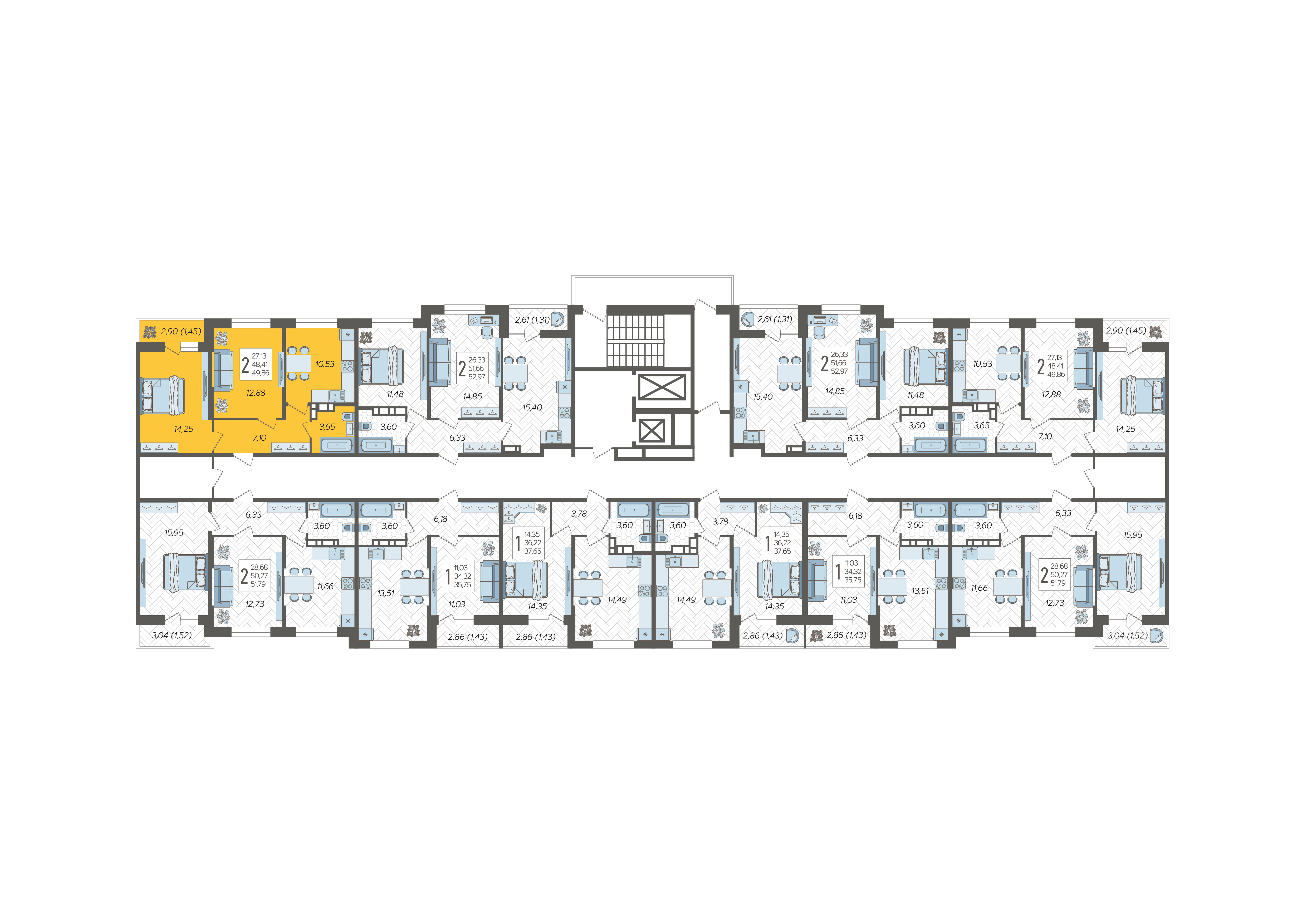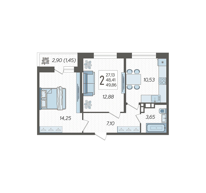 2-комнатная квартира №322, 49.86 м²