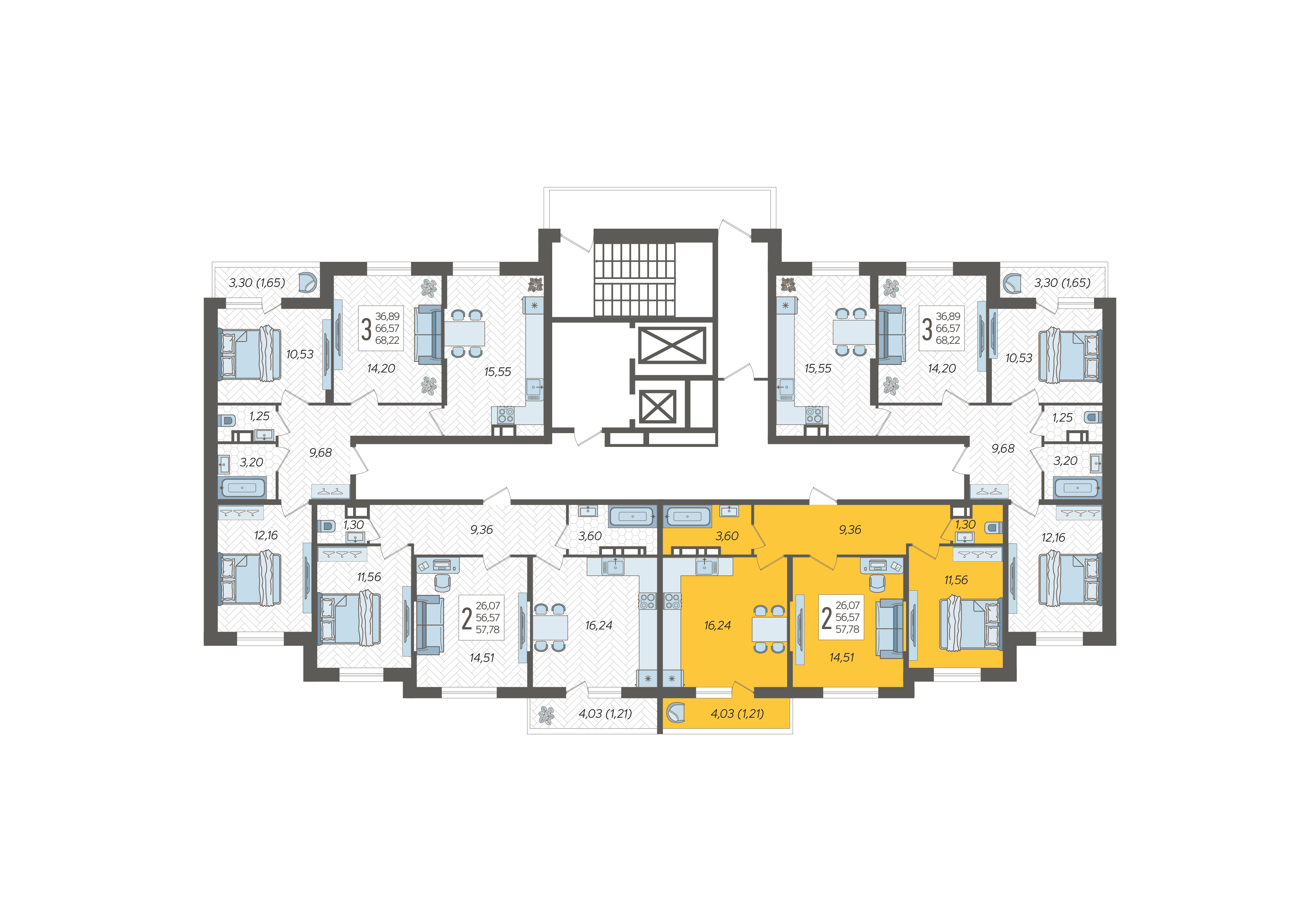 2-комнатная квартира №70, 57.78 м²