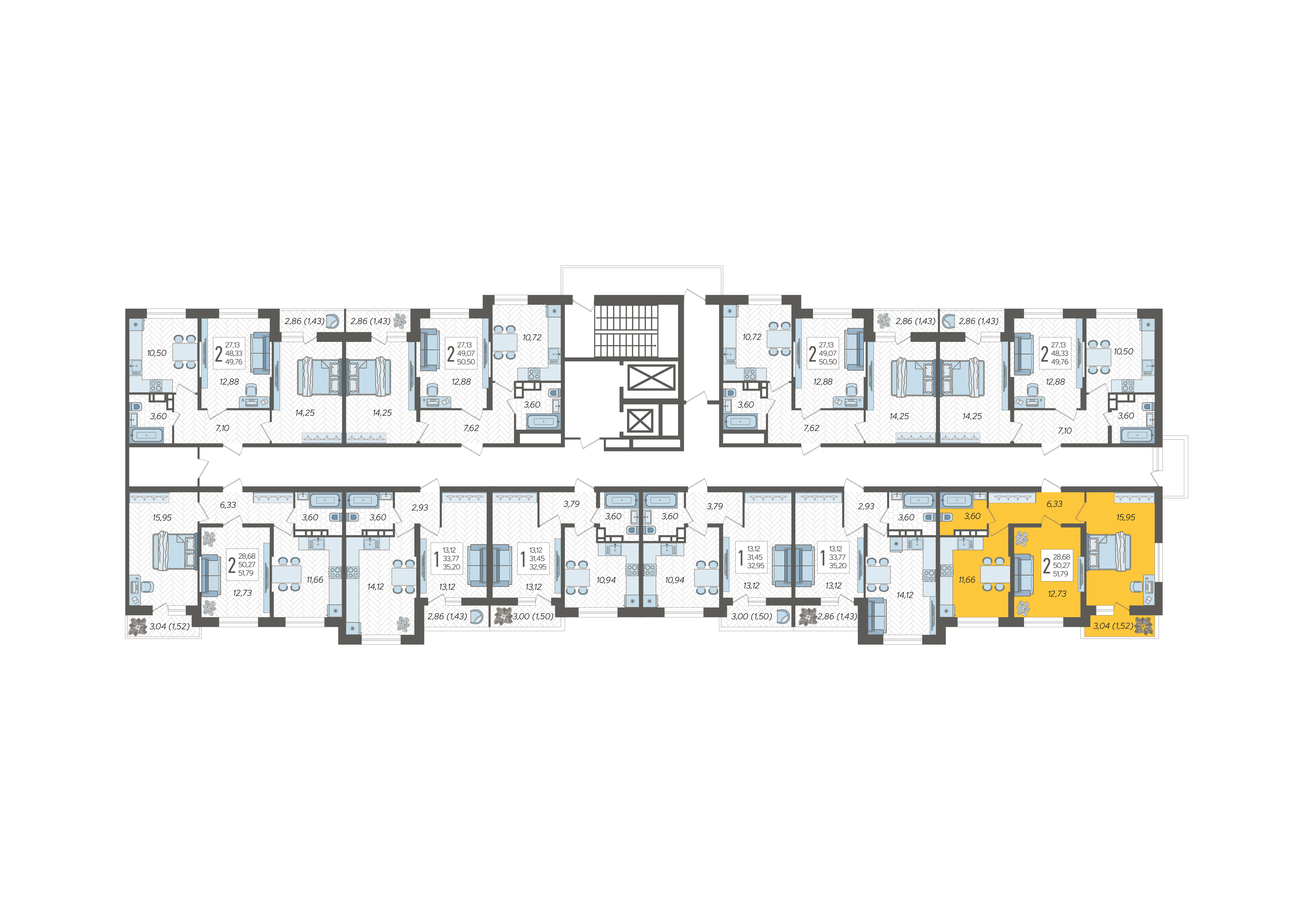 2-комнатная квартира №83, 51.79 м²