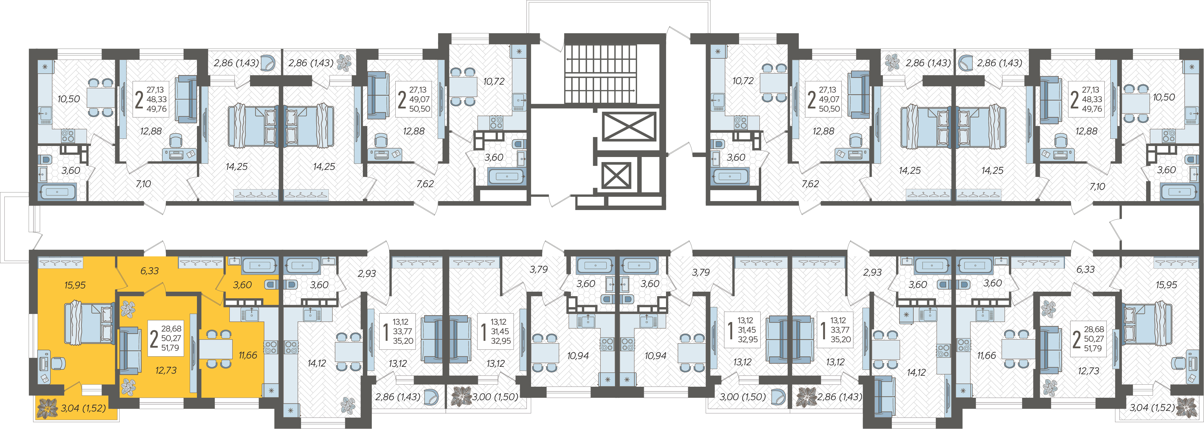 2-комнатная квартира №308, 51.79 м²